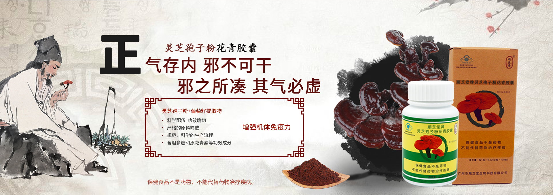 廣州市順芝堂生物科技有限公司成立于2003年,是經(jīng)國家工商局批準,以弘揚中醫(yī)藥養(yǎng)生文化,從事生命健康產(chǎn)業(yè),集科研開發(fā)、健康咨詢、生產(chǎn)銷售于一體的科技企業(yè)。 公司以大力弘揚中醫(yī)藥養(yǎng)生文化,實現(xiàn)“健康青春順芝堂”的目標為企業(yè)宗旨;堅持“以人為本,追求卓越、臻于至善”的企業(yè)精神;探索實踐產(chǎn)品與技術相結(jié)合的順芝堂特色的養(yǎng)生之路。遵循“讓消費者獲得健康、讓經(jīng)營者獲得利益、讓企業(yè)得到發(fā)展”三個有利的經(jīng)營原則,堅持以“科技是第一生產(chǎn)力”理論為指導,不斷研發(fā)出適應市場需求的的高科技、高品質(zhì)、高功效的系列產(chǎn)品;